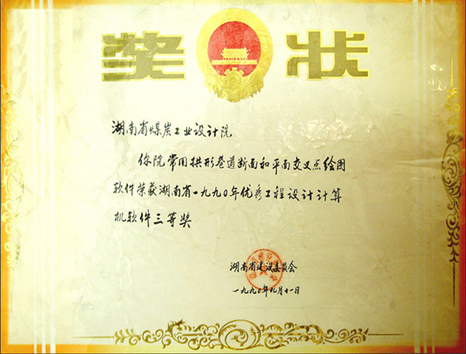 湖南省優(yōu)秀設(shè)計(jì)表?yè)P(yáng)金獎(jiǎng)(1984)